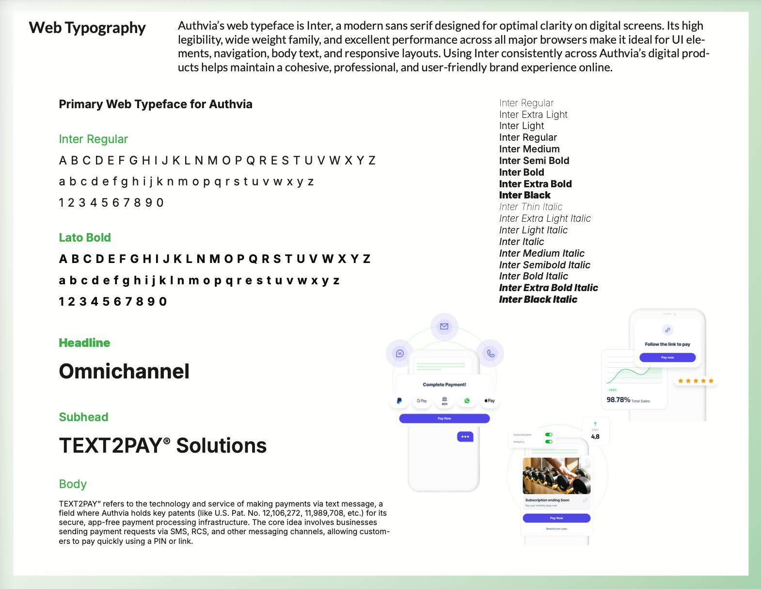 Translated complex fintech concepts—omnichannel payments, messaging infrastructure, security, and patented technology—into clear, modern, and approachable visual systems. Established scalable design patterns that balanced enterprise credibility with usability, helping Authvia communicate trust, innovation, and simplicity across web, product, and go-to-market assets.